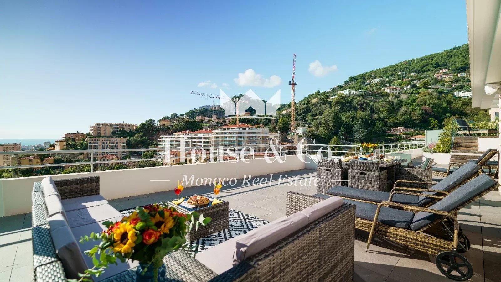 Completamente arredato, dispone di tre camere da letto e tre bagni, una cucina attrezzata aperta su un soggiorno luminoso e spazioso, e si apre su una splendida terrazza con vista panoramica sul mare e sul Principato di Monaco.